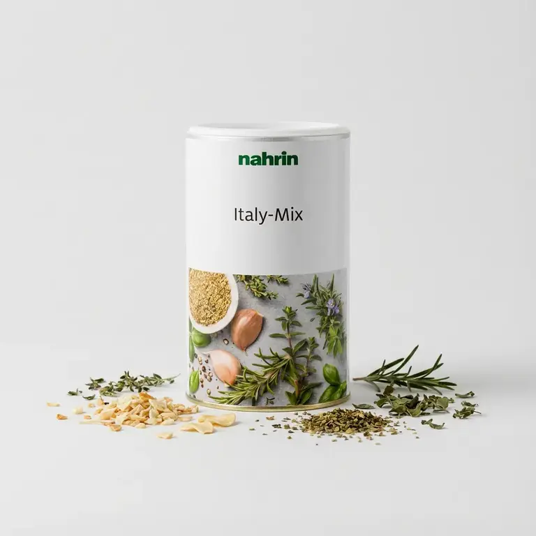 Cipolla, aglio, origano, basilico, maggiorana, timo, rosmarino, santoreggia, dragoncello, paprica, pepe. Vegetale - Senza lattosio - Senza glutine Faq Domande e risposte A cosa serve Italy Mix? Italy Mix Nahrin è un condimento speziato ideale per le tue insalate, nella farcitura del pesce, sulla pizza, sulle bruschette, per insaporite il formaggio, sugli spaghetti agio, olio e peperoncino. Ti aiuterà a ridurre l’utilizzo del sale dandoti il giusto gusto dei piatti mediterranei. Recensioni Get a Quote for Nome cliente Email cliente Numero di telefono Commento Invia Spedizione Consegna normalmente entro 7 giorni lavorativi Maggiori Informazioni Maggiori Informazioni Avvertenze Chiudere bene…