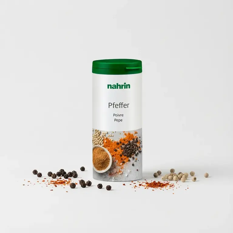 Prodotto Pepe: Miscela 3 pepi, a base di pepe nero, pepe bianco e pepe di Cayenna che le conferiscono un aroma perfetto. Il pepe di Cayenna conferisce a questo raffinato condimento la giusta nota saporita. Questa miscela stuzzicante è indicata per insalate, uova, carne, salse, gratin, zuppe e molto altro ancora..