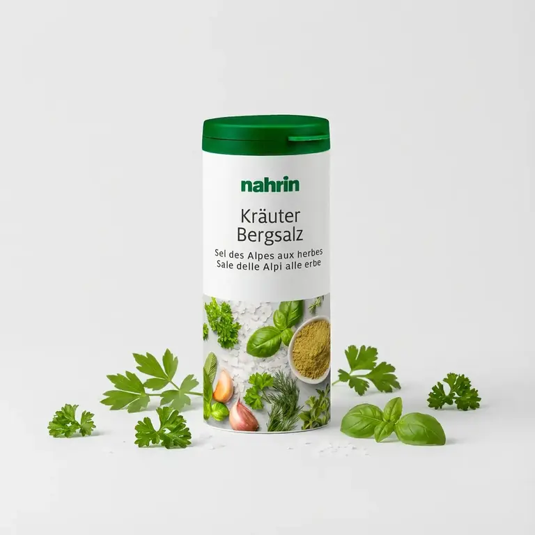Sale delle Alpi 67 % (CH), erbe 13 % (prezzemolo, levistico, cerfoglio, basilico, maggiorana, salvia, timo, aneto, dragoncello), farina di riso, cipolle, olio di colza, aglio. Vegetale - Senza lattosio - Senza glutine Faq Domande e risposte A cosaa serve Sale delle Alpi? Il Sale delle Alpi Nahrin è una pratica soluzione che può sostituire il sale da cucina. Con un sapore intenso ma equilibrato è ideale per qualsiasi piatto. Recensioni Get a Quote for Nome cliente Email cliente Numero di telefono Commento Invia Spedizione Consegna normalmente entro 7 giorni lavorativi Maggiori Informazioni Maggiori Informazioni Avvertenze Chiudere bene lo spargino e conservare all’asciutto.