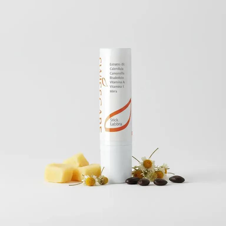 Prodotto Stick Labbra: Stick labbra nutriente ed idratante, si stende facilmente e la sua applicazione apporta benessere ed equilibrio alla sottile cute delle labbra. A base di burro di Karité, Calendula, Camomilla, olio di Ricino, vitamina A e vitamina E, apporta sostanze indispensabili per proteggere le labbra da irritazioni ed eccessiva secchezza. Contiene inoltre olio di Mirra noto per le proprietà antibatteriche e cicatrizzanti utili in caso di screpolature della pelle. Stick labbra, senza parabeni e senza paraffina. Scopri la nostra Lista Rossa!.